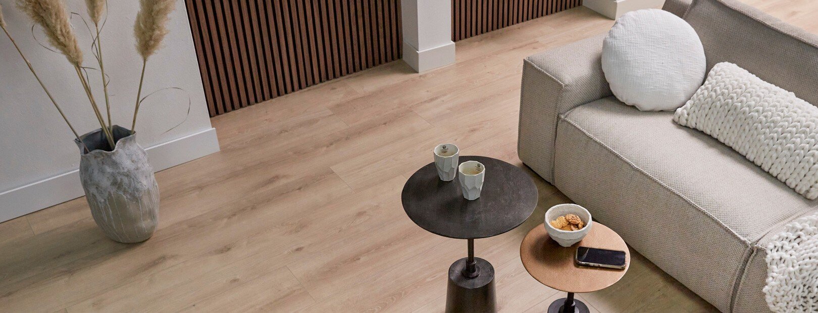 Kleuren zijn belangrijke sfeerbepalers in huis. Om je moderne interieur in één keer gezellig te maken, kunnen kleuren al voor veel verandering zorgen. Over het algemeen zorgen warme kleuren voor een fijne sfeer in jouw woonkamer. Je kunt er natuurlijk voor kiezen om je muren een likje verf te geven, maar bij Ambiant geloven we in de kracht van iets anders: trendy vloeren. De vloer is de basis van ieder interieur en kan de sfeer in een interieur eenvoudig omtoveren.